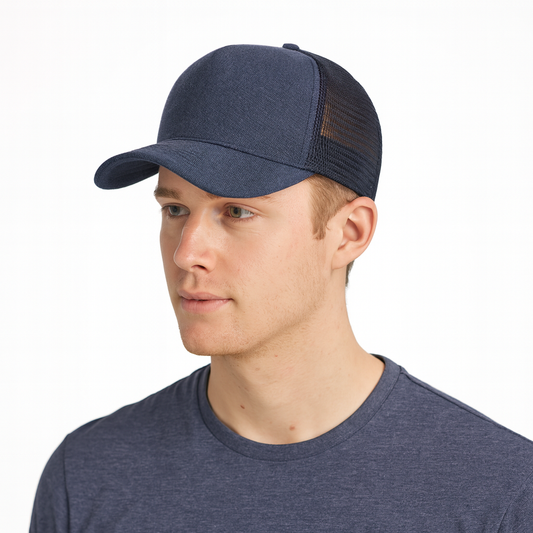 Stay up-to-date with current trends in our Heathered Mesh Trucker. This hat features the classic...