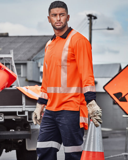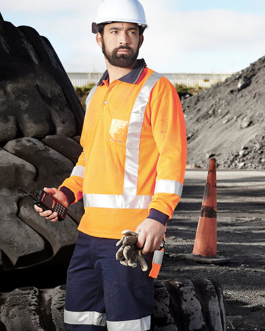 Hi Vis Spliced Long Sleeve Polo - Hoop Taped