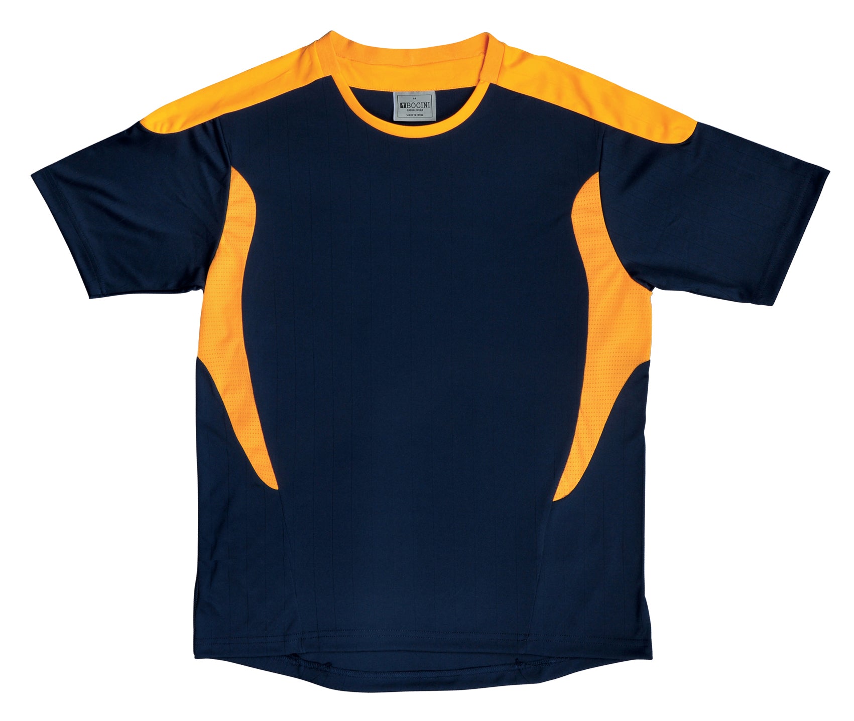 150gsm Round Neck Drop Needle Breezeway Tee Shirt With Contast Panels On Shoulders. Micromesh Panels Under Arms.100% Breezeway Polyester Fabric.