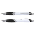 Retractable plastic ballpoint pen with a white barrel, a translucent soft-touch grip and shiny chrome trim. It has a black large volume refill with 1800 metres of German manufactured Dokumental ink.