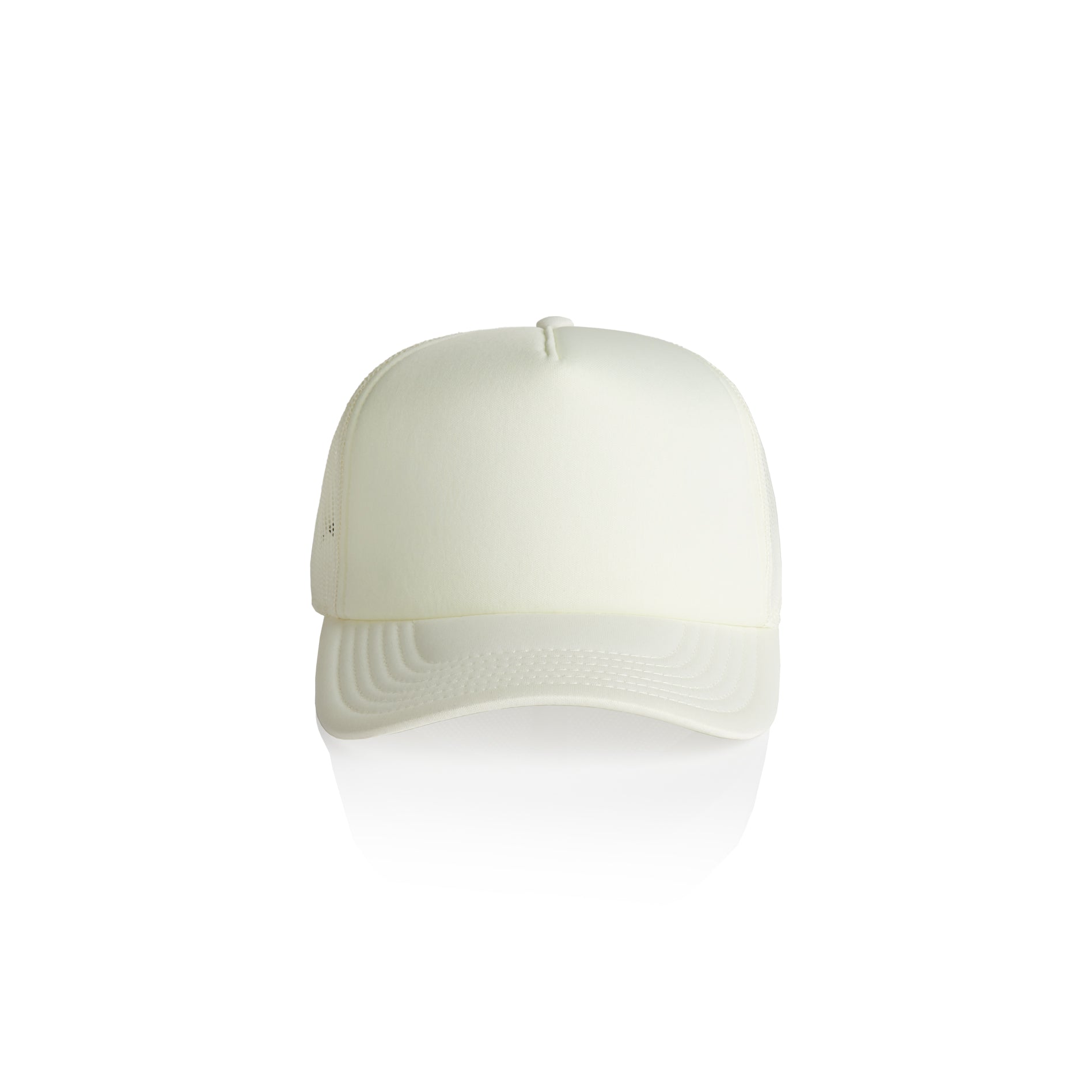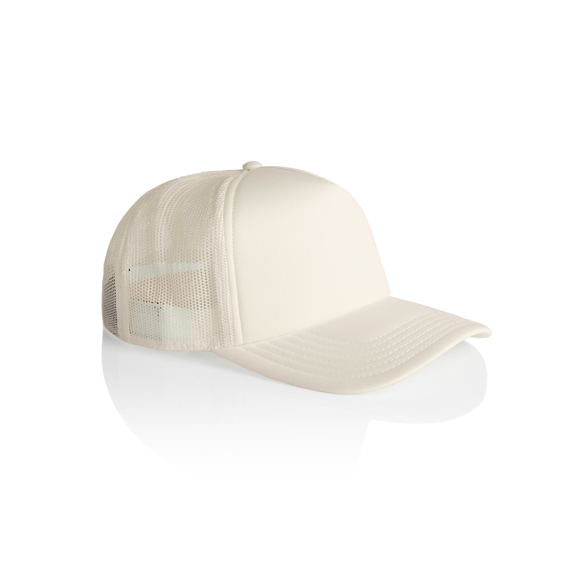 Mid Profile 100% polyester foam front and peak, 100% Recycled polyester mesh back. Plastic snapback, tonal under-peak lining, mesh back. Tear-out AS Colour label.