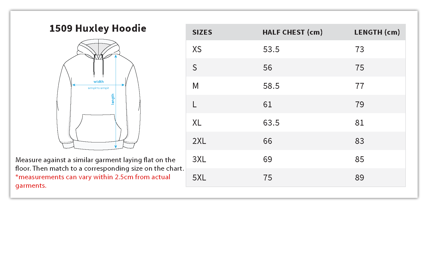 Fabric: 300gm 50% Polyester 50% Cotton