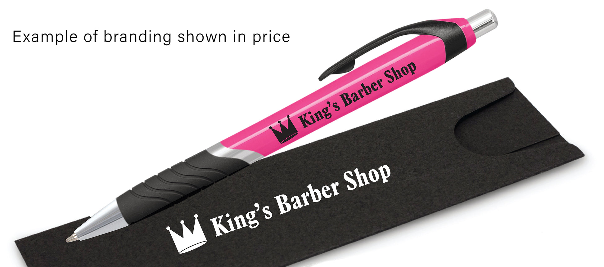 Retractable plastic ballpoint pen with a soft-touch grip and shiny chrome trim. It has a black or blue refill with 1200 metres of German manufactured Dokumental ink and can be presented in an optional pen sleeve.