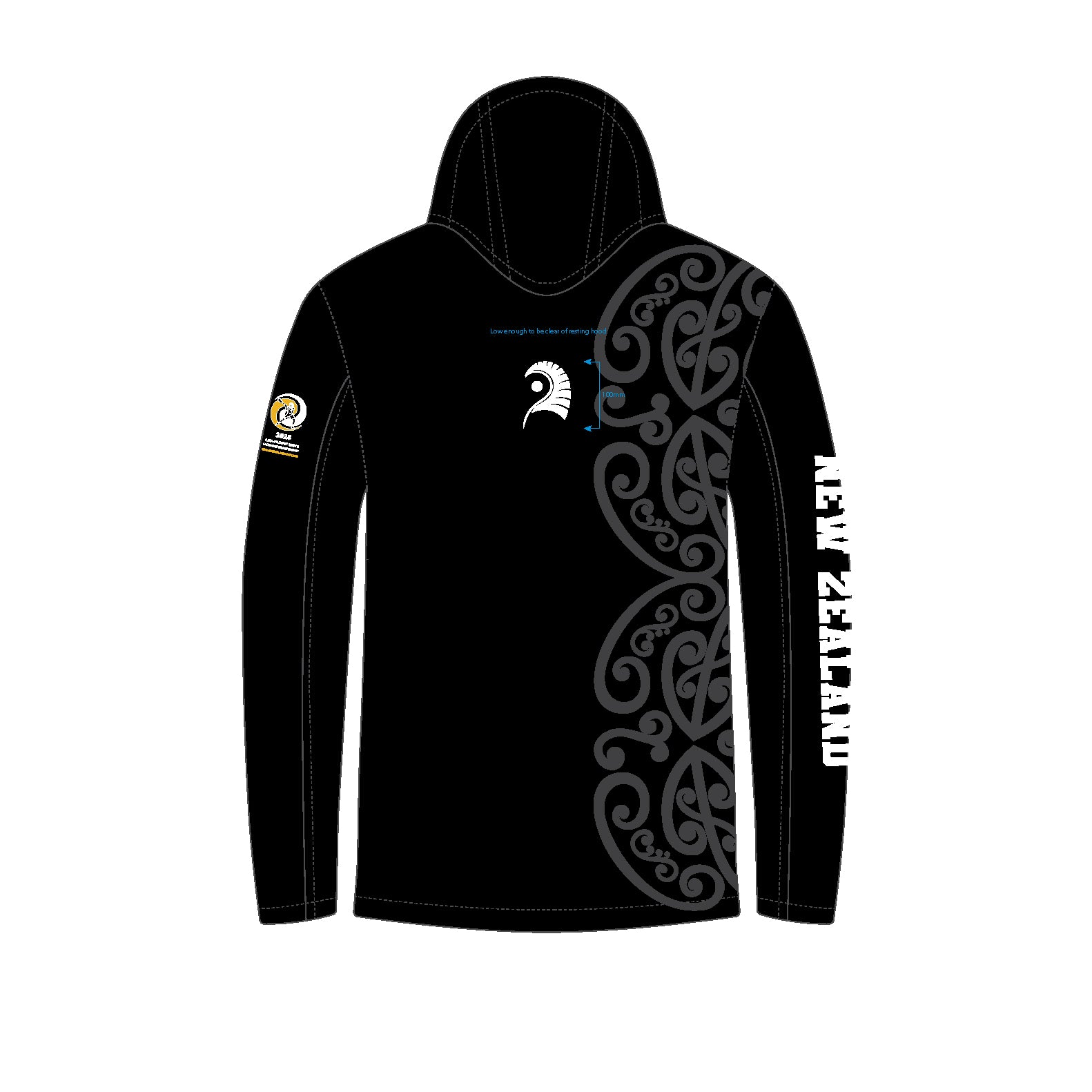 Sublimated NZ Lacrosse windbreaker jacket with hood. Made from 100% polyester.