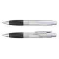 Retractable plastic ball pen with a soft rubber grip, a frosted translucent barrel and metallic silver trim. It has a blue large volume refill with 1800 metres of German manufactured Dokumental ink and can be presented in an optional pen sleeve.
