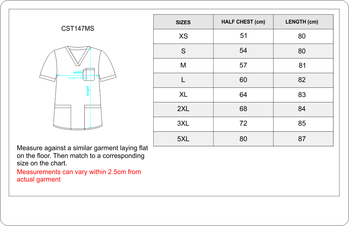 - Styles feature side splits, 2 front pockets and a chest pocket on mens styles.