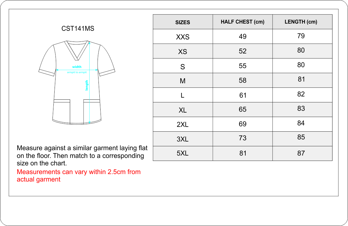 - Multiple pockets located on the scrub top and ID badge loop on left side shoulder seam.