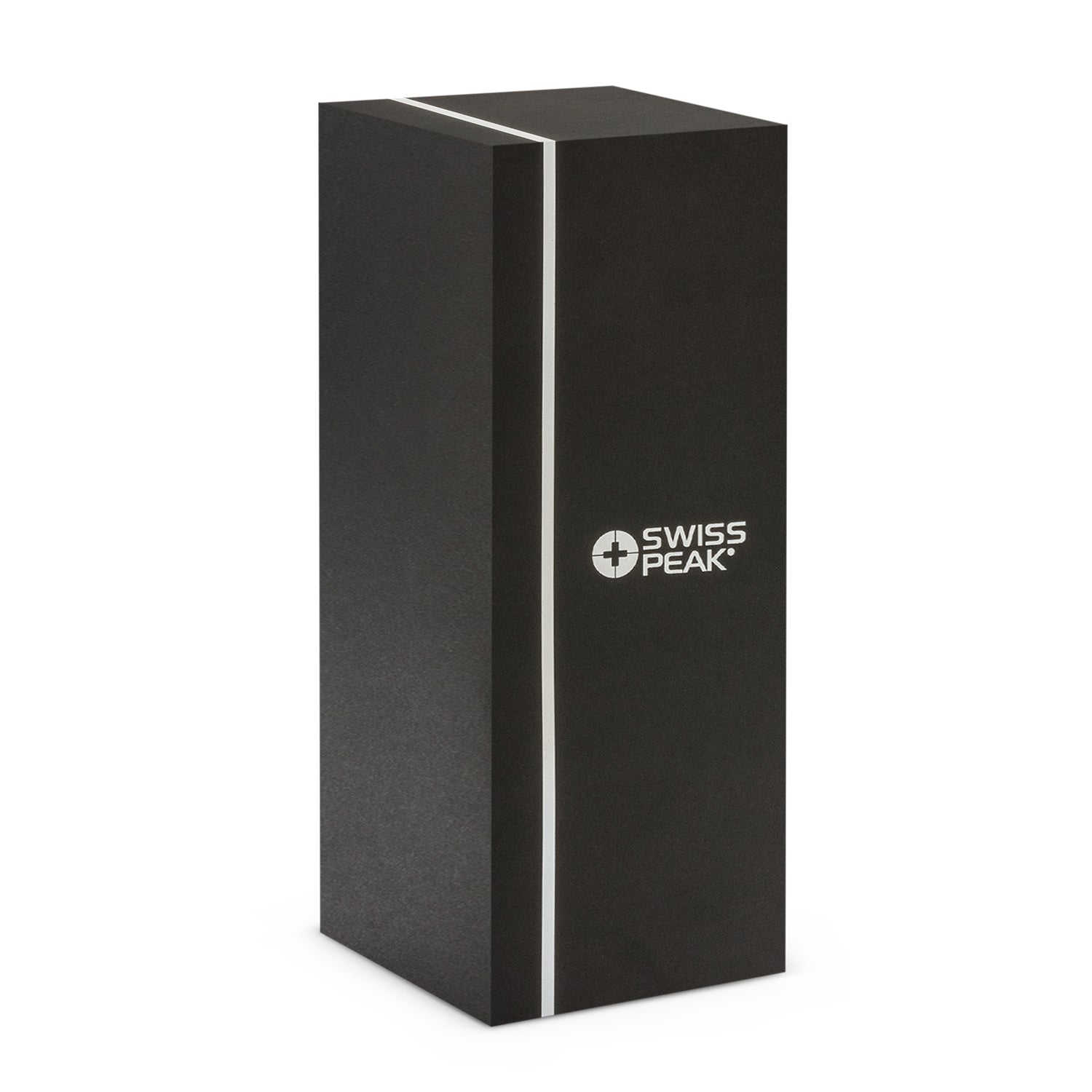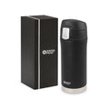 Premium 300ml double wall, vacuum insulated stainless steel coffee mug. It has a unique copper lining on the inner wall which improves its performance and the outer wall has a tough powder coated finish. Elite will keep drinks hot for up to 12 hours and cold for up to 24 hours. It features a secure screw on lid with a push button activated flip closure which is spring loaded for smooth, effortless operation. The locking mechanism on the lid prevents leaks and spills even if the cup is knocked over. This precision coffee mug is BPA-free and laser engraves to stainless steel finish. It is presented in a Swiss Peak gift box with an information leaflet included. This product is not dishwasher safe and handwashing is recommended.Â