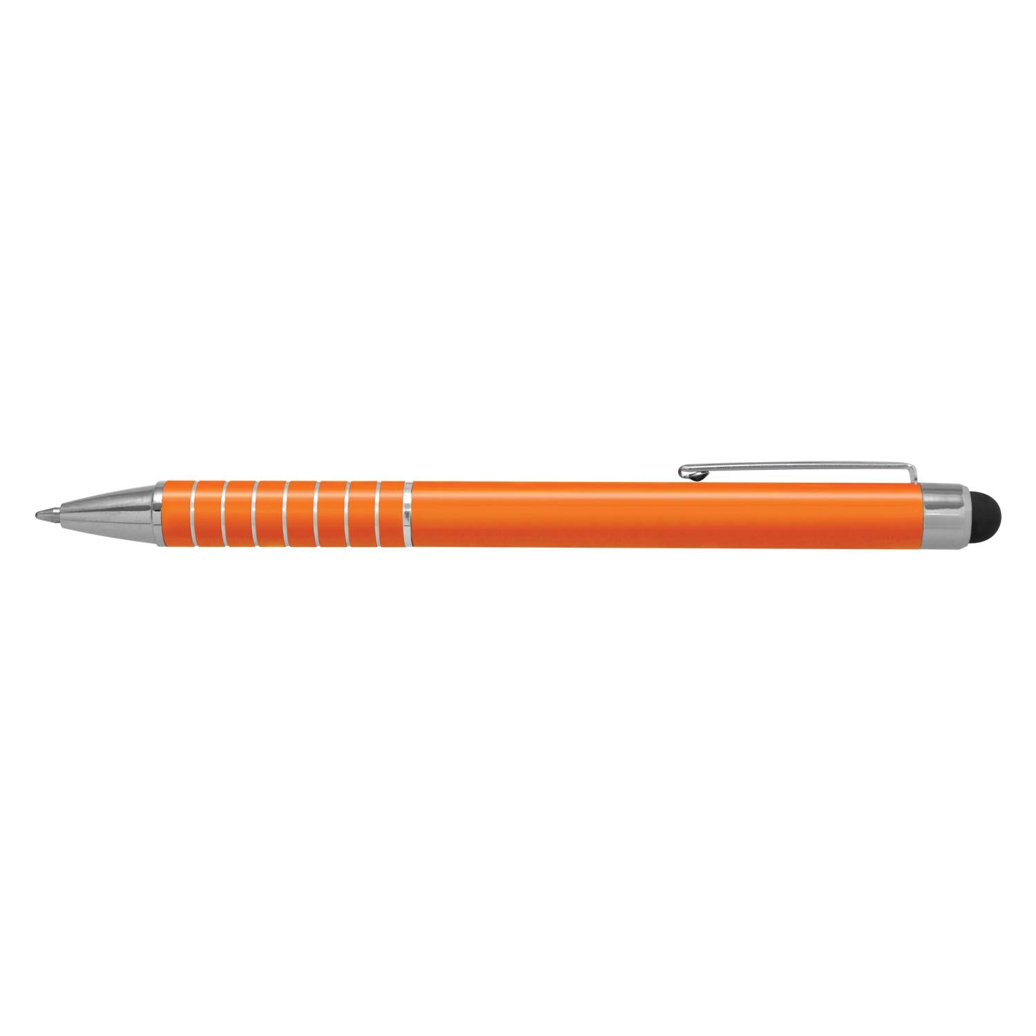 Compact twist-action aluminium ballpoint pen with a lacquered barrel, shiny chrome accents and a stylus. It has a black refill with 800 metres of German manufactured Dokumental ink.