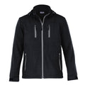 100% polyester end on end softshell bonded with anti-pill microfleece. Wind resistant, breathable, showerproof, Water repellant rating 5000mm,