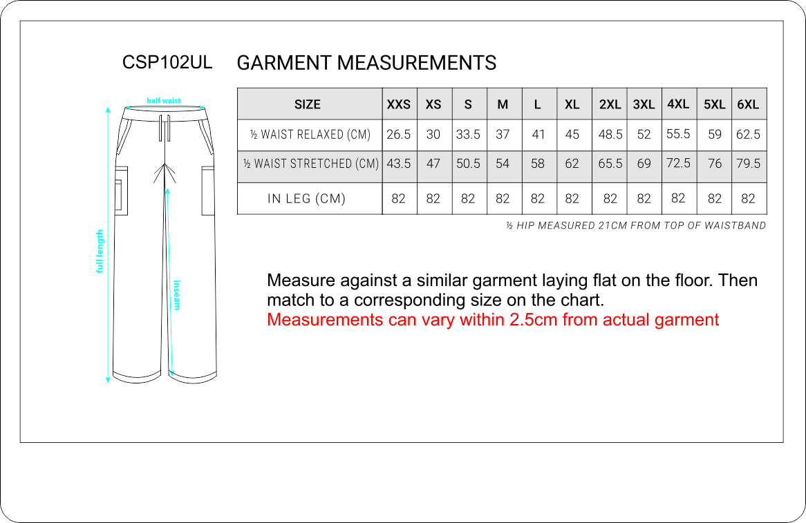 - Style features: cargo style patch pocket on right side leg, side seam pockets, back patch pocket, 5cm hem allowance, elasticated waist with internal draw string.