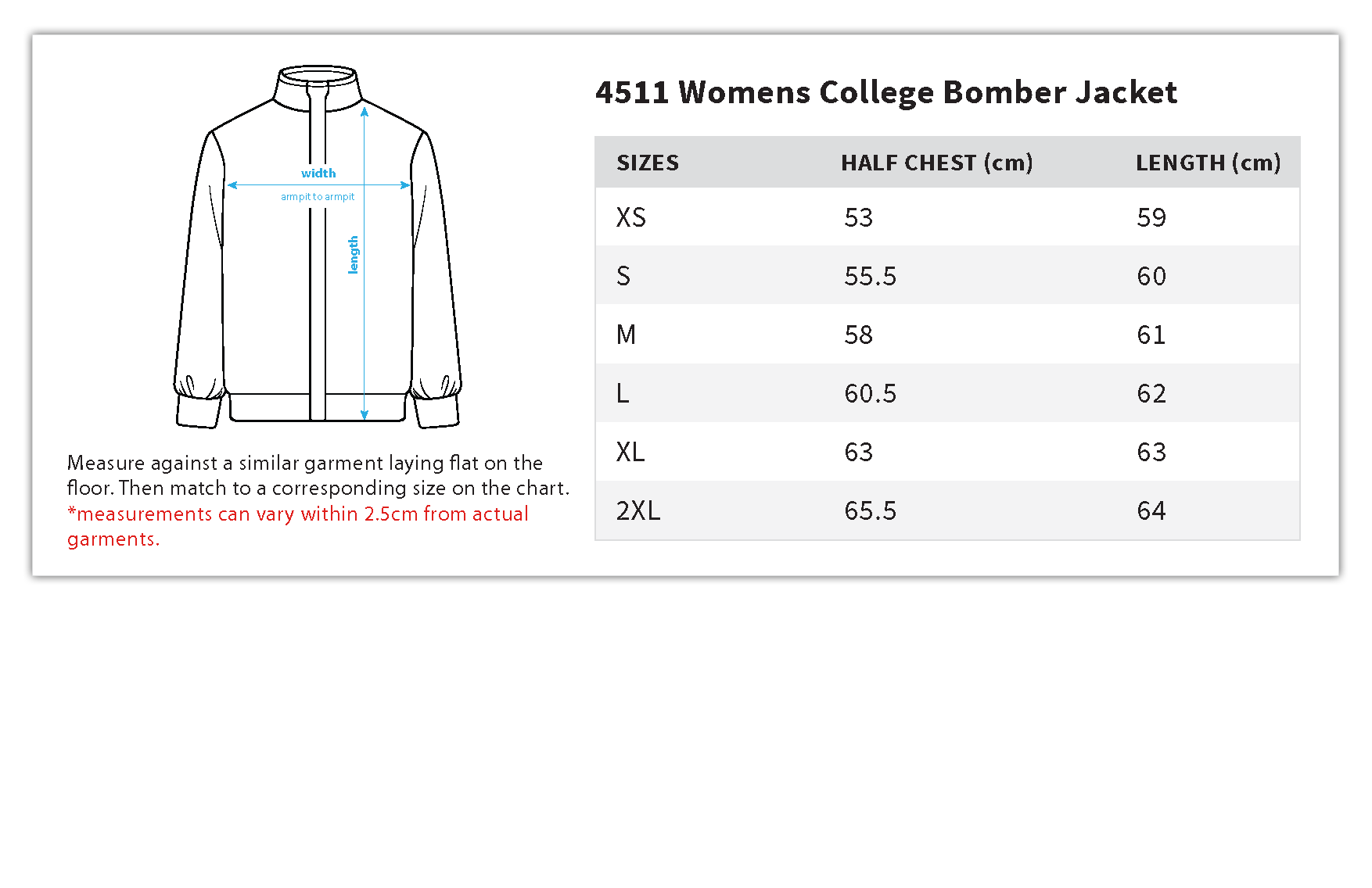 Construction: Ribbed collared jacket, two side pockets, YKK snap dome to close, internal patch pocket, ribbed collar, cuffs and hem. Invisible lining access zip to assist with branding.