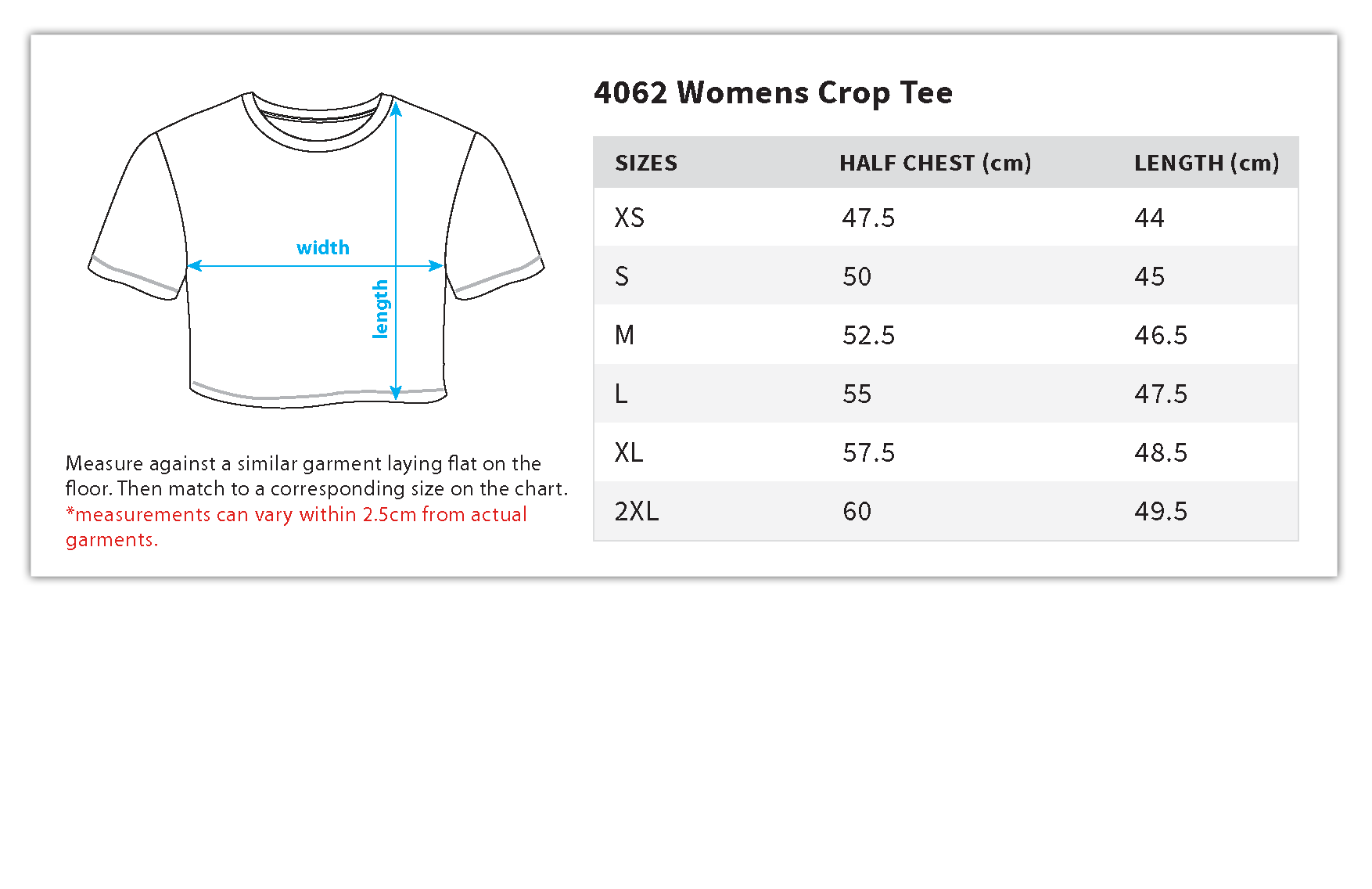 Construction: Short body, dropped shoulders, neck ribbing, side seamed, shoulder to shoulder tape, double needle hems, preshrunk to minimise shrinkage