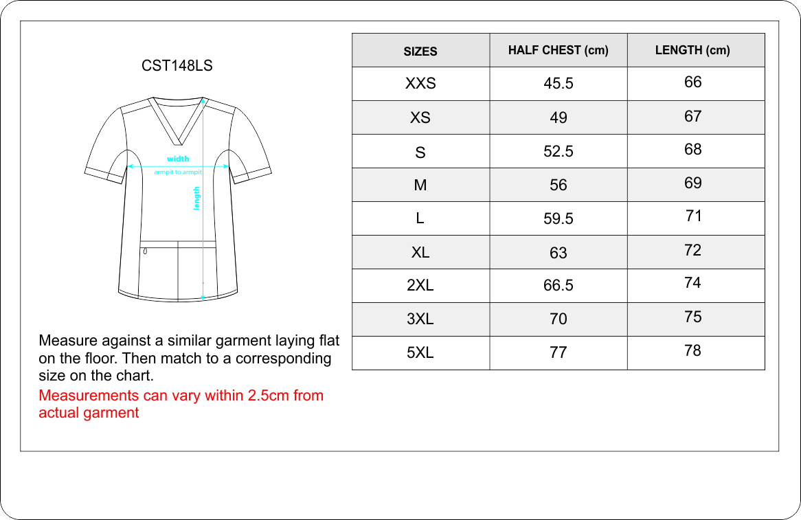 - Styles feature side splits, 2 front pockets and a chest pocket on mens styles.
