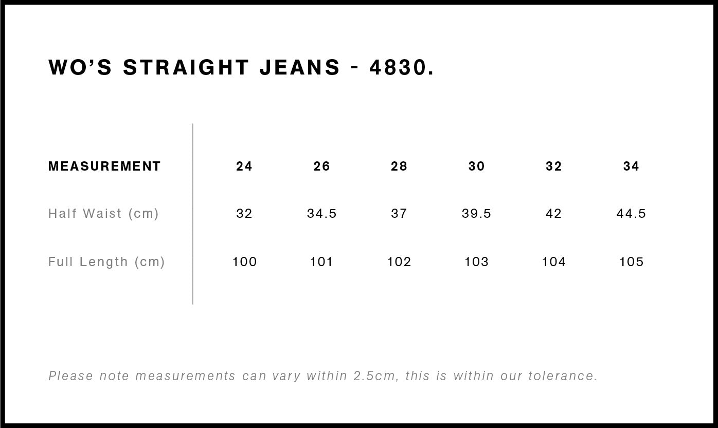 Construction: Straight leg, 2 side pockets, patch pockets at back, anti-brass metal YKK zip fly, rivets at front pocket corners, preshrunk to minimise shrinkage