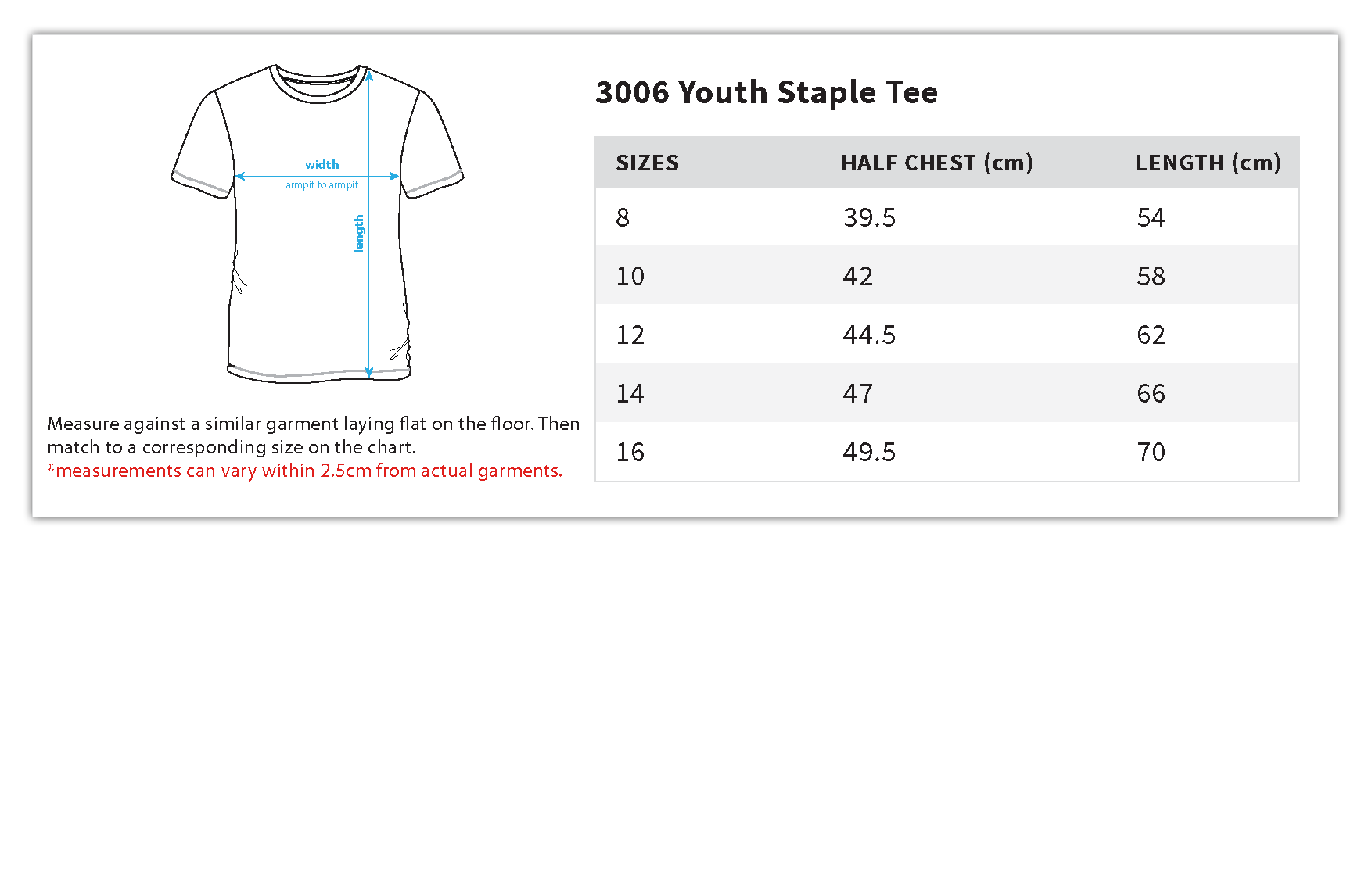 Construction: Neck ribbing, side seamed, shoulder to shoulder tape, double needle hems, preshrunk to minimise shrinkage.
