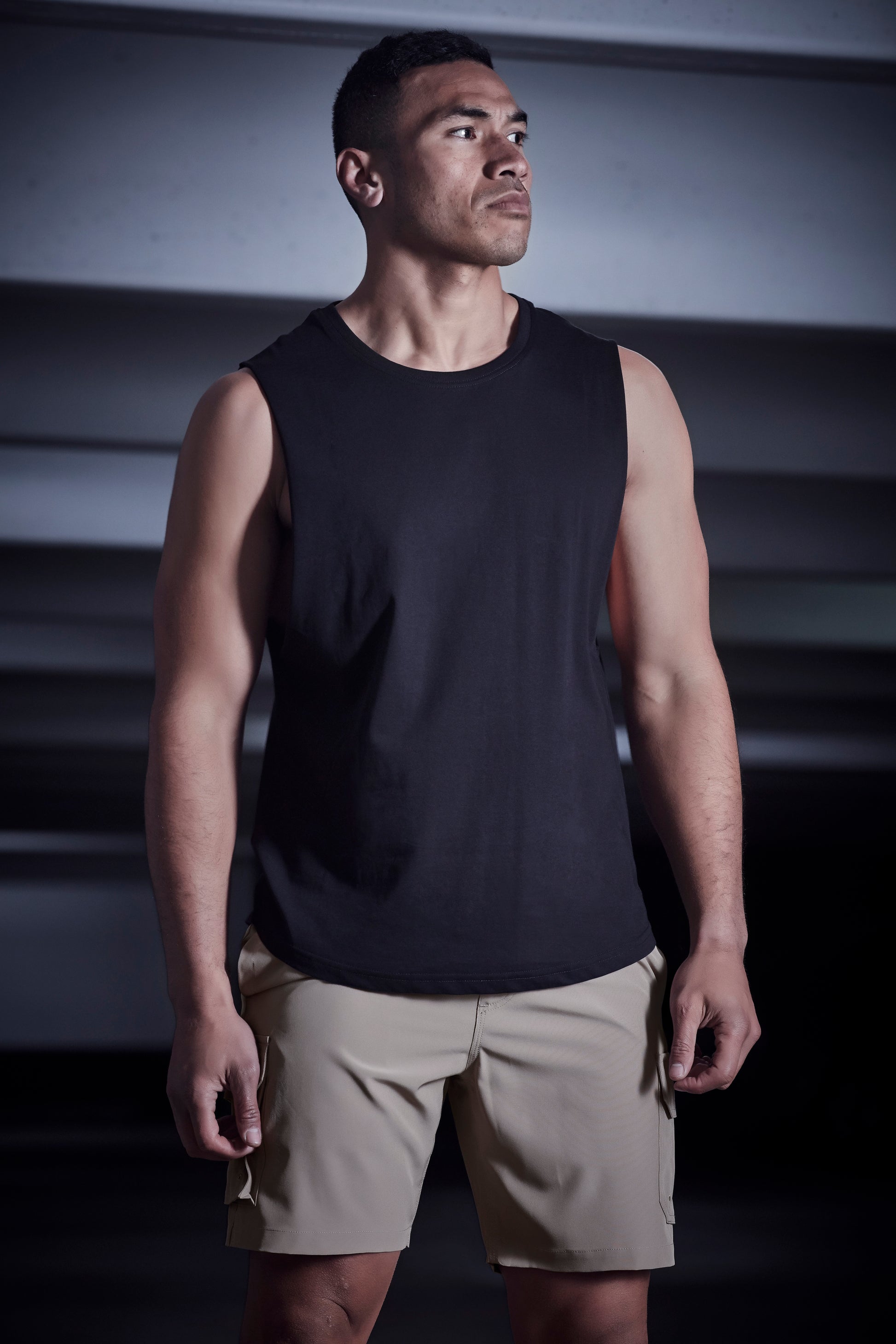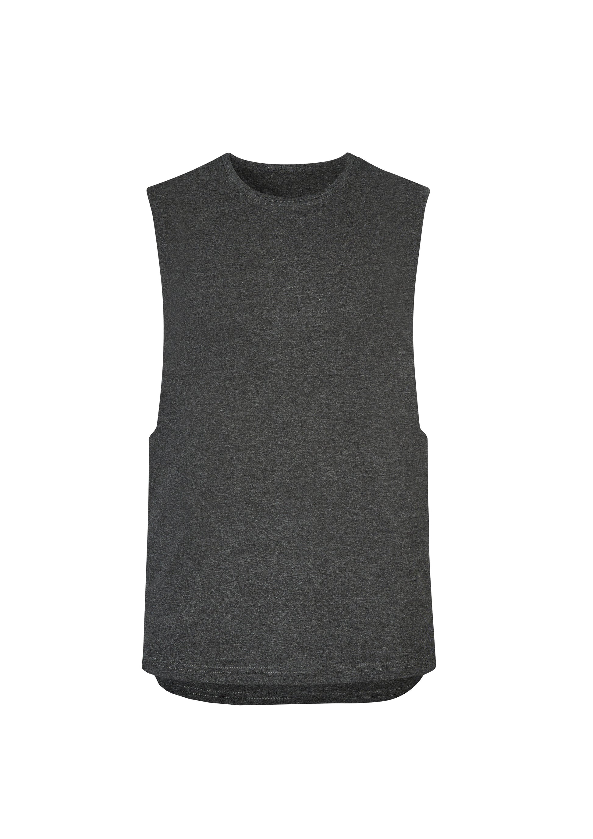 - Mens Sleevless style features drop armhole with raw edge finish