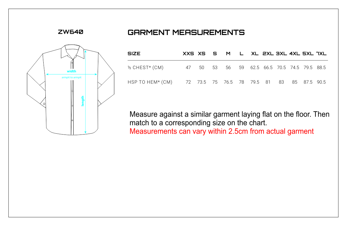 - 2 Chest pockets with pen partition and quick close tape fastening